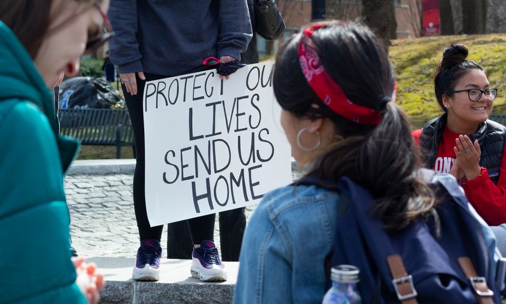 There are no announcements concerning spring sports such as baseball, softball, lacrosse and track & field. The men’s basketball game against Hartford goes ahead as planned per the Monday announcement. Attendance is limited and no tickets are sold at the door. The team loses a crucial game 64-58.