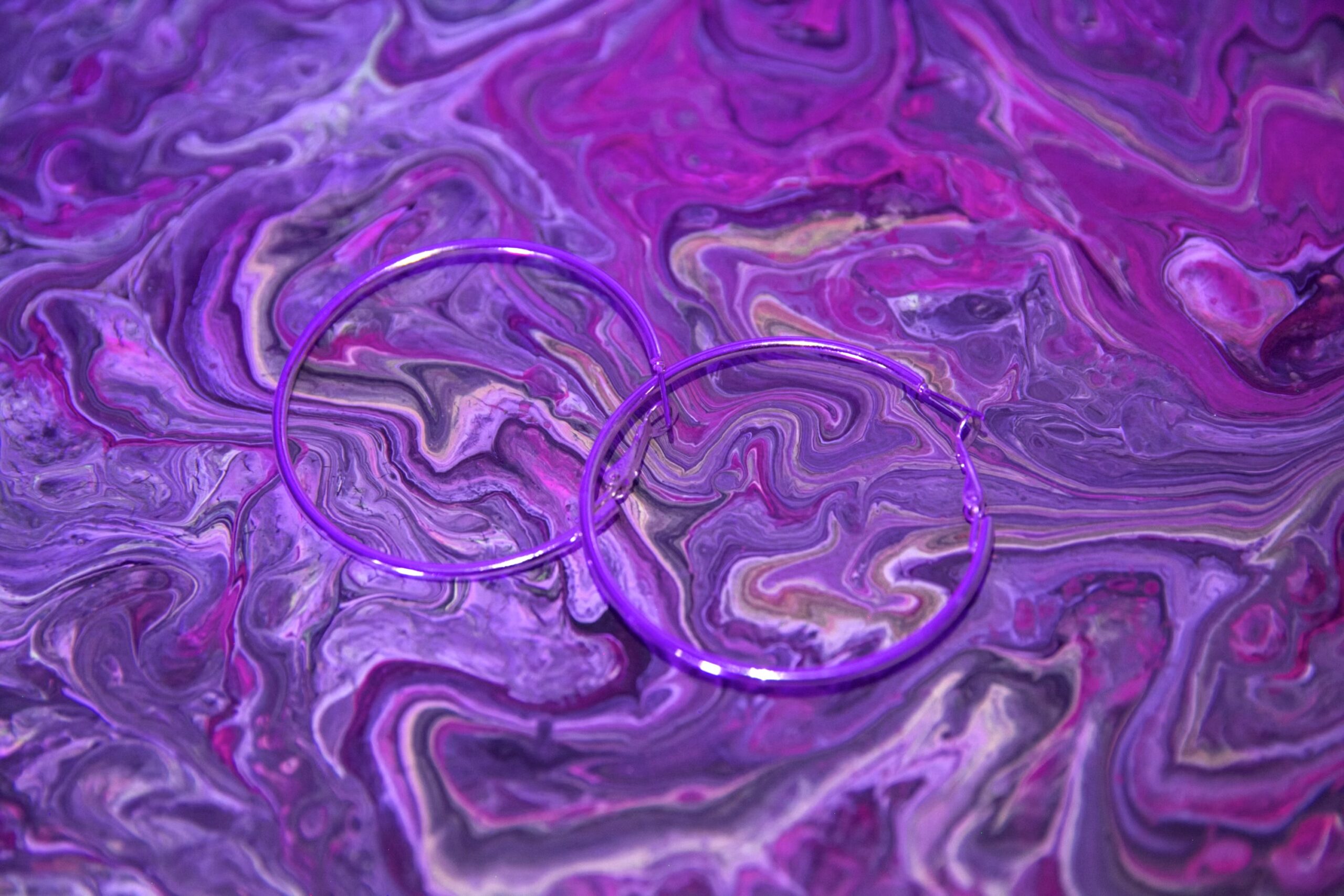 Best worn with colorful outfits, this pair is simple in design yet eye-catching nonetheless. Wear them under the sun and you’ll be colored with waves of purple and blue. On closer inspection, you can see the slight imperfections within the acrylic — an unintended yet beautiful reminder that you’re wearing a one-of-a-kind piece.