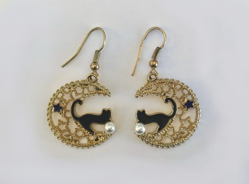With anticipation coursing through my fingers, I opened the gift to find these gorgeous earrings. Immediately, I was in shock. From the black cat to the crescent moon, every detail seemed to be made for me. Even their size was perfect; they fit just right in my palms. It almost felt like destiny for them to end up in my hands.